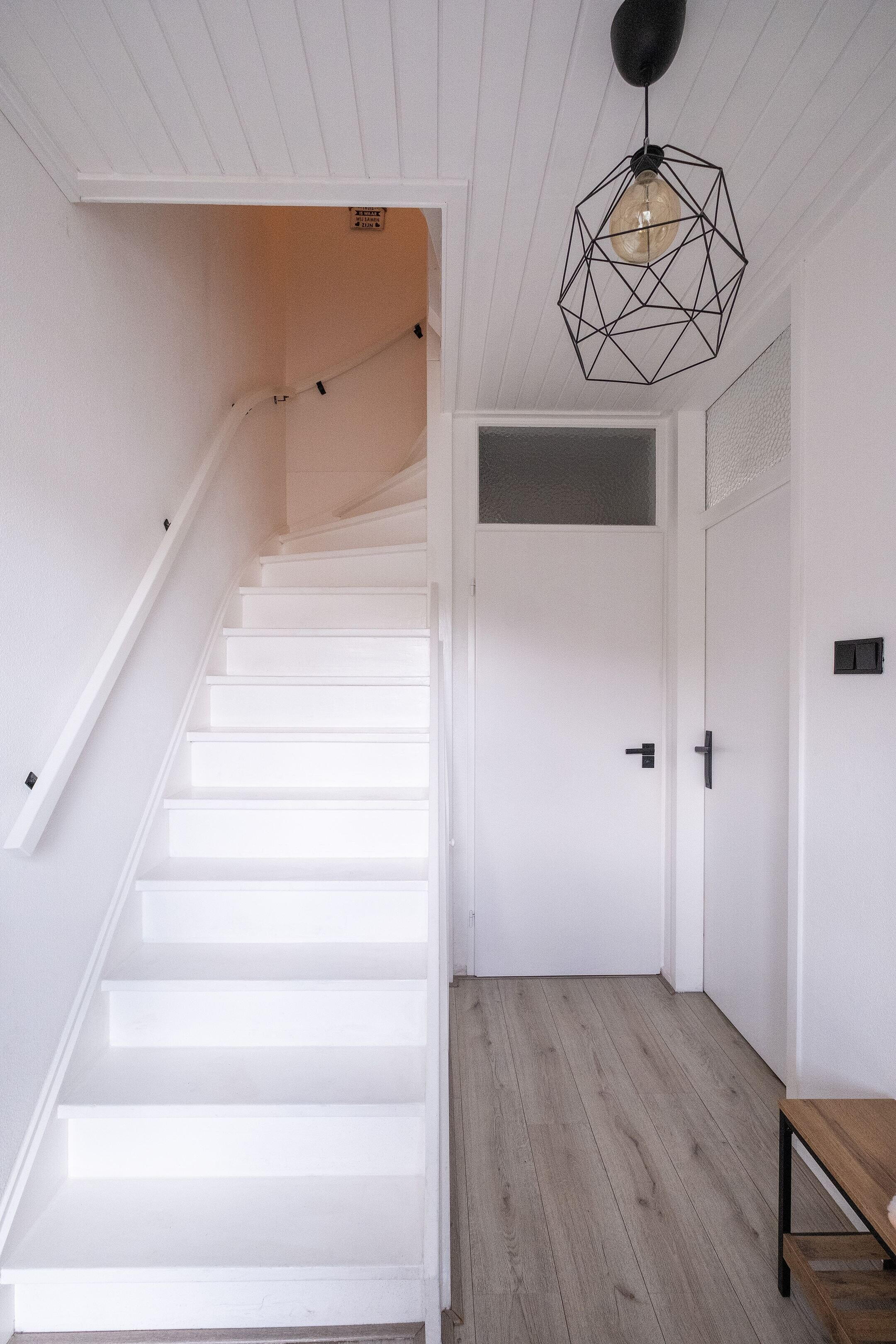 Via de entree kom je in de hal met meterkast (8 groepen) en trapopgang. De woonkamer is ruim en licht en afgewerkt met een laminaatvloer en spachtelwanden. Dankzij de airconditioning kun je hier zowel koelen als verwarmen, wat zorgt voor extra comfort in alle seizoenen.