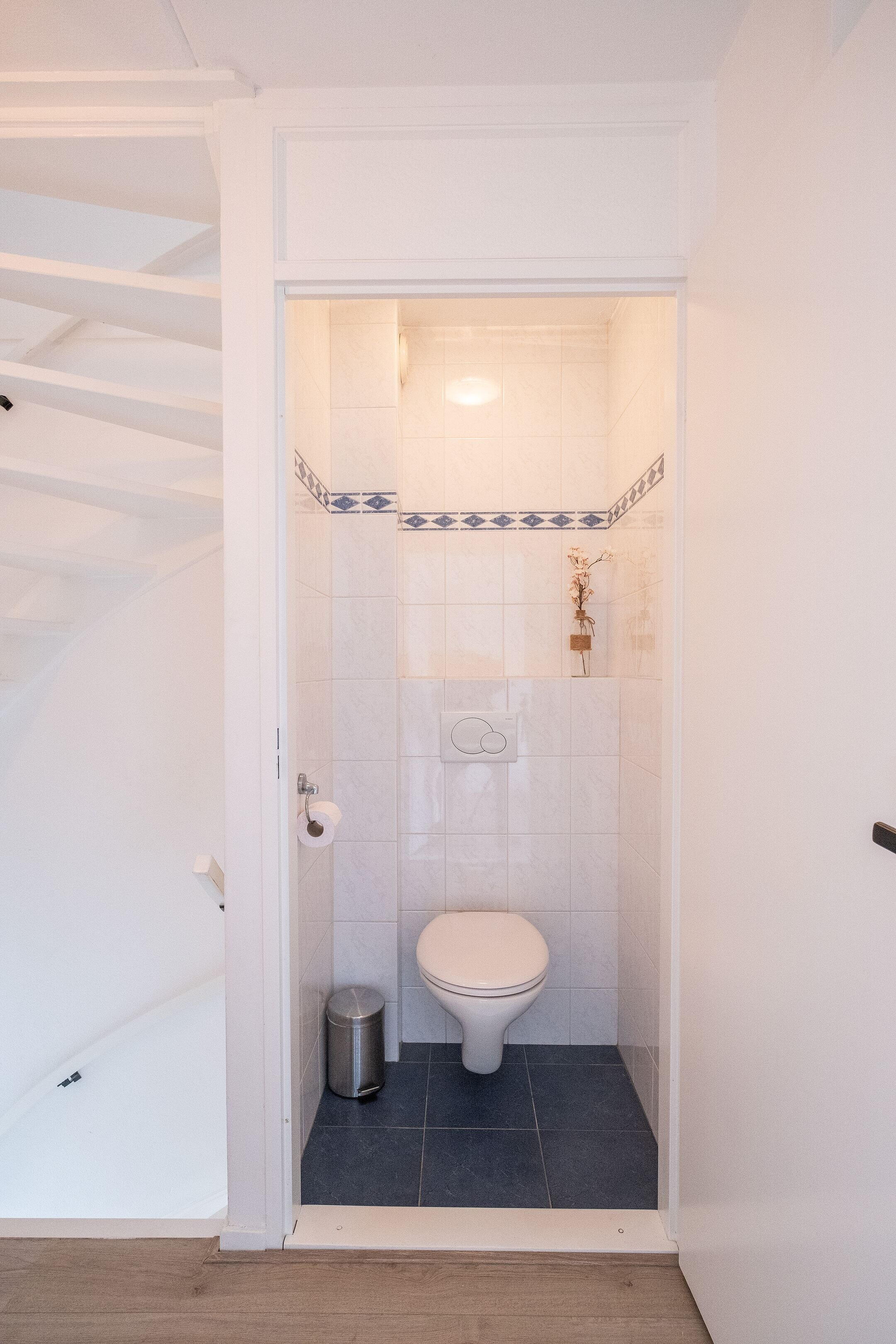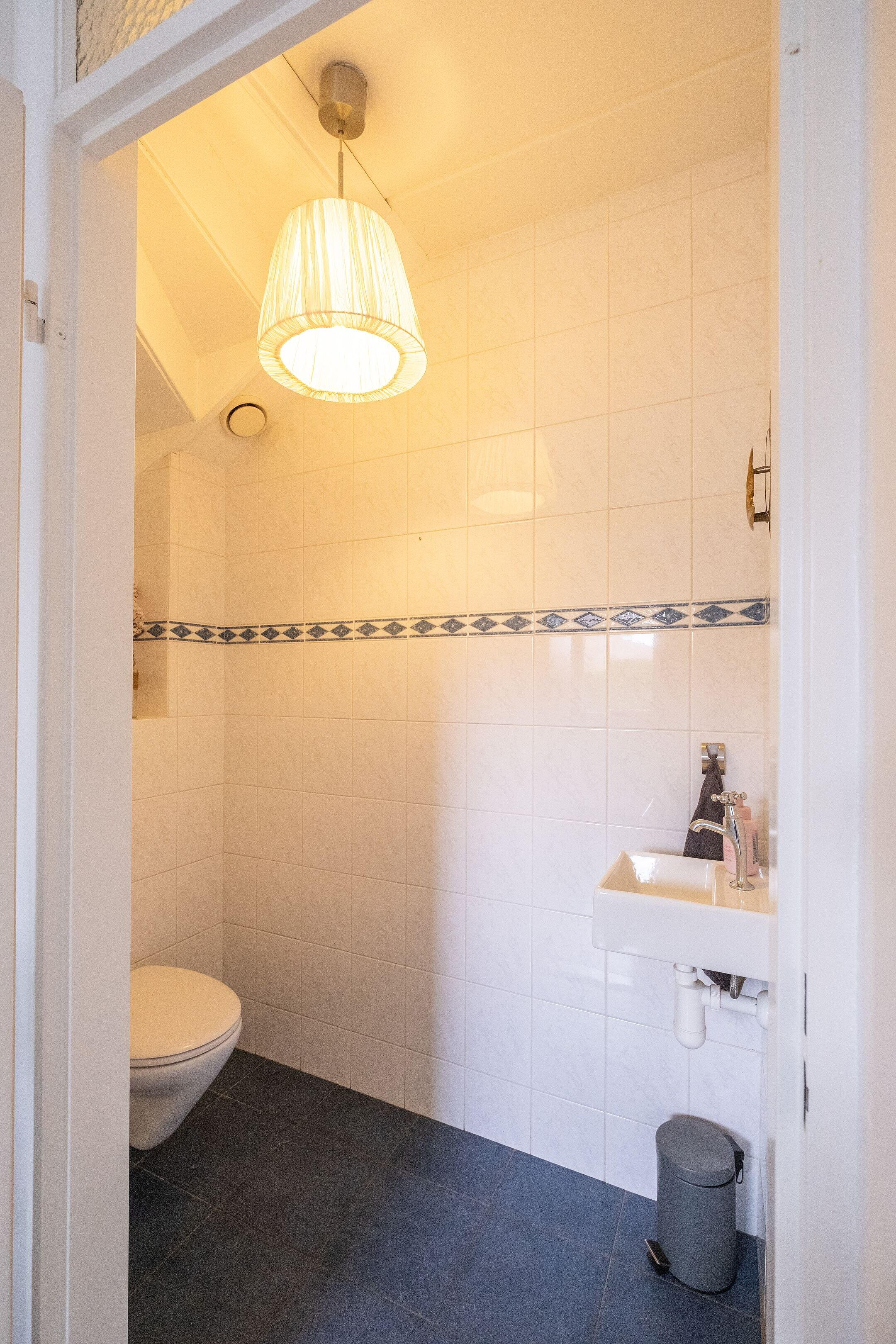 Heel fijn is het toilet dat separaat van de badkamer is geplaatst en vanuit de overloop bereikbaar is.