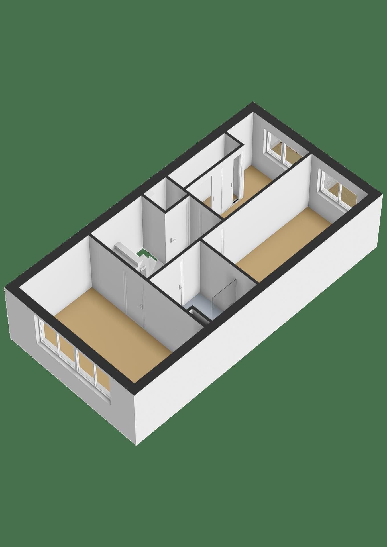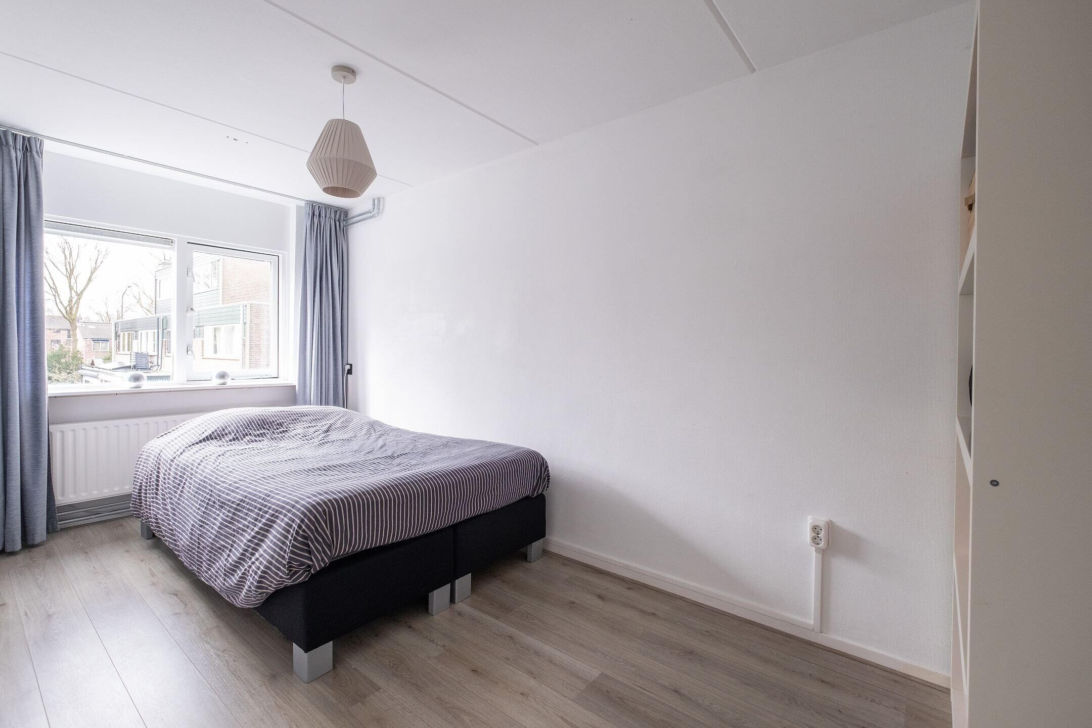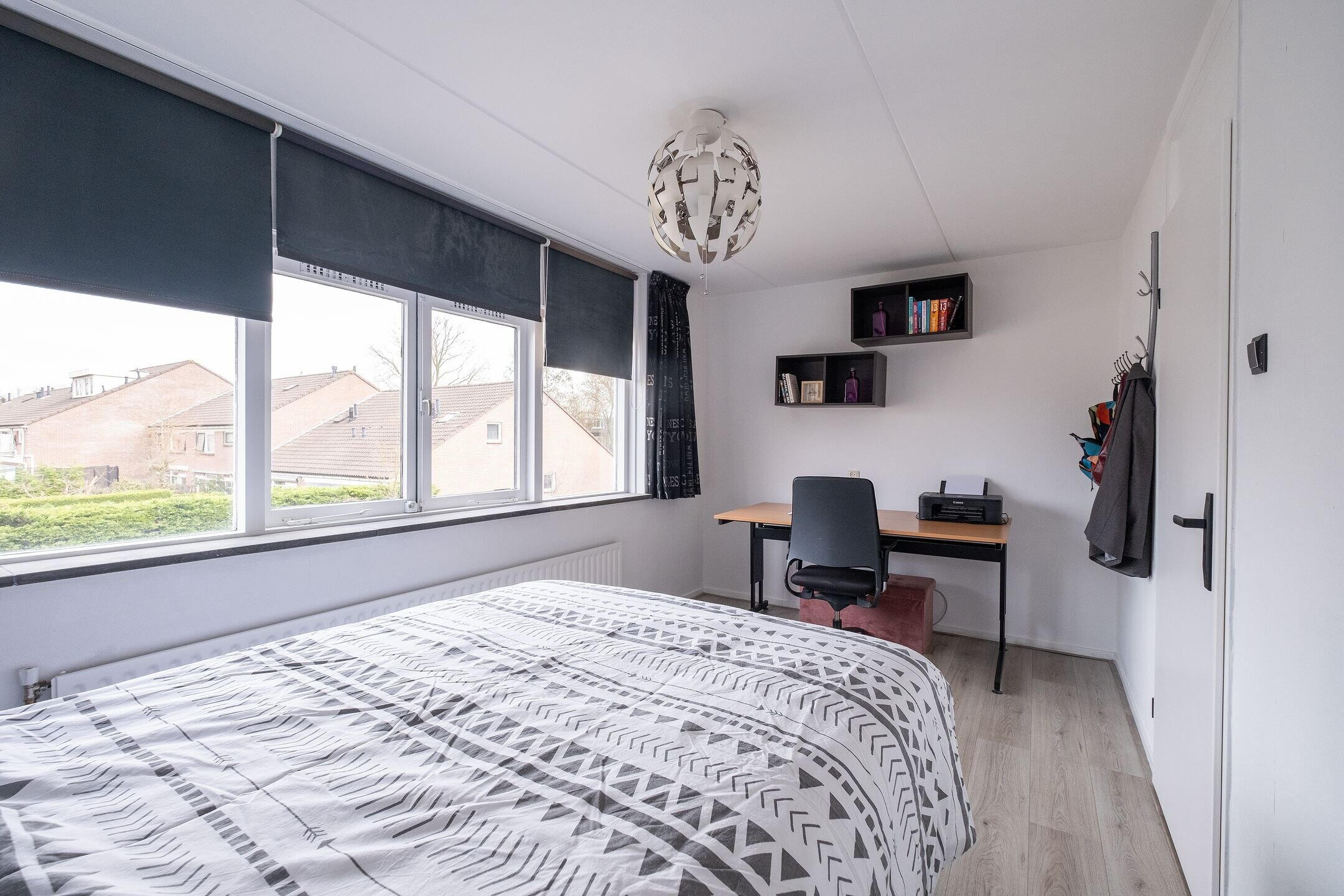 Op de eerste verdieping bevinden zich drie slaapkamers, afgewerkt met laminaatvloeren en behang. De indeling is praktisch en er is een vaste kast aanwezig in één van de kamers.